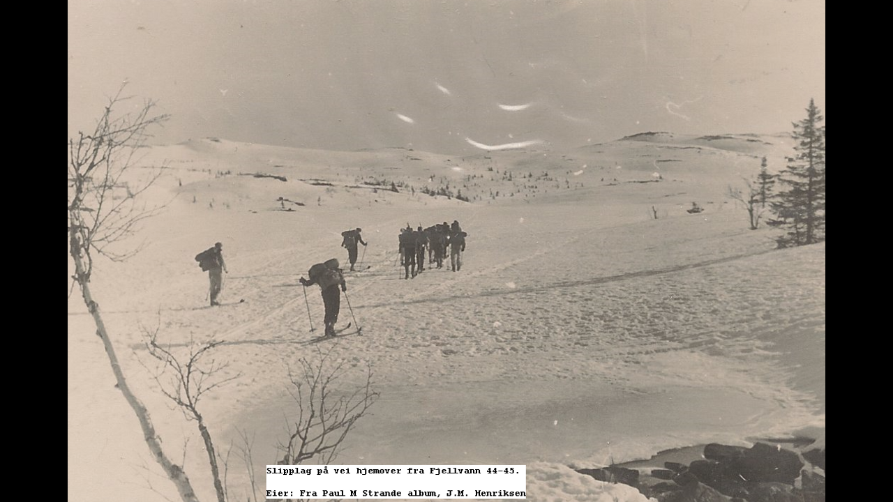 Dette er slipplassen ved Fjellvatnet, der hovedpartiet ble droppet 28.11.1944.