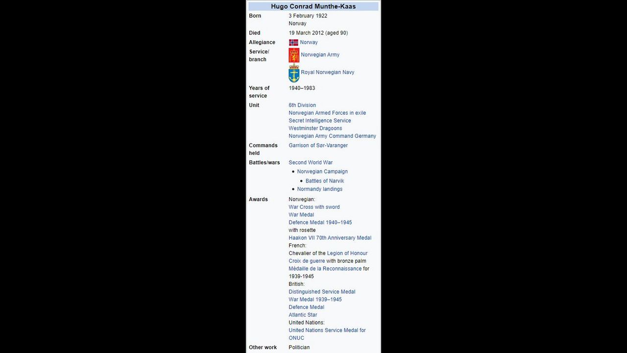 Hugo Munthe-Kaas (3 mai 1922) med dekknavn Birger Stål var bare