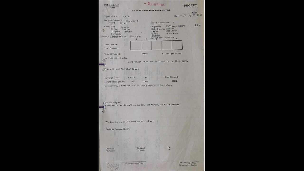 Natten i forveien hadde flyet tatt av fra Harrington Airfield Northampton i England. Flyet var av typen B-24 Liberator og var en del av den såkalte Operasjon Carpetbagger. Denne operasjonen var ledet av den amerikanske hærens luftvåpen, og hadde til hensikt å forsyne motstandsbevegelsene i besatte land med våpen og annet krigsviktig materiell. Fra januar 1944 til slutten av krigen slapp gruppen spioner og forsyninger til motstandsbevegelsene i Frankrike, Belgia, Nederland, Danmark og Norge.